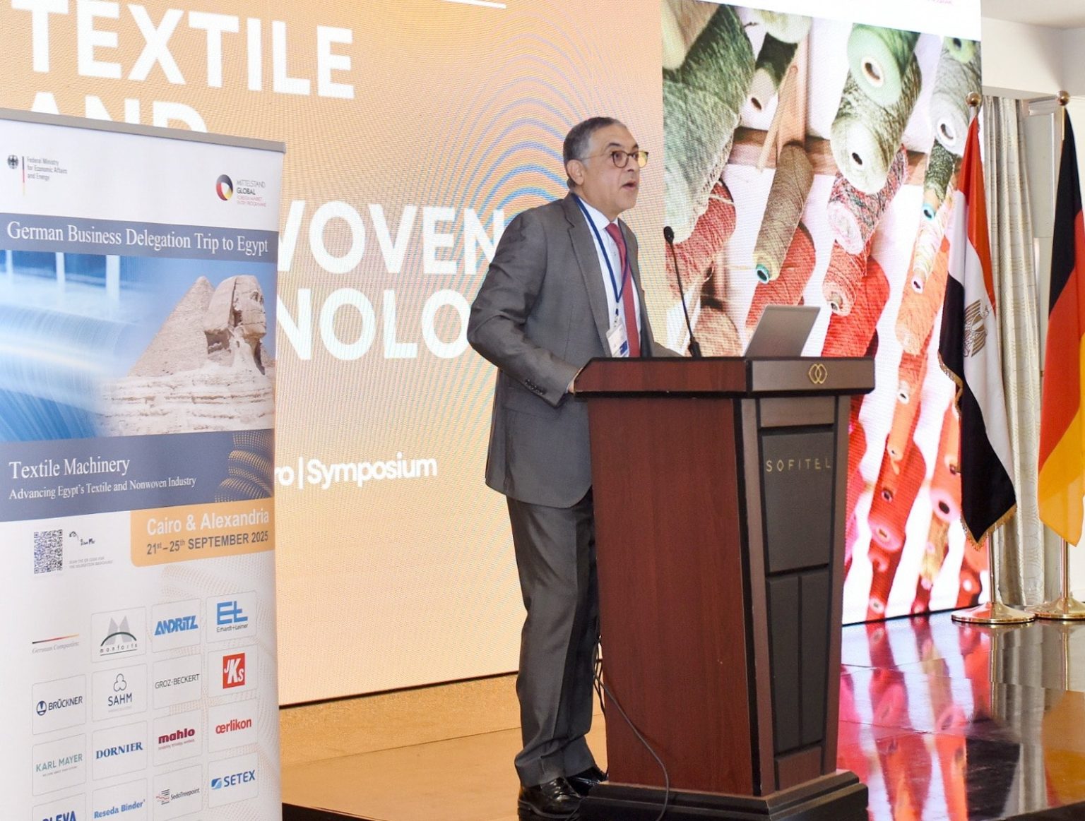 وأكد السيد/ حسام هيبة على أن الحكومة المصرية وضعت قطاع المنسوجات والملابس الجاهزة في صدارة أولوياتها، حيث تسعي لأن تكون مصر مركز عالمي متكامل لصناعة النسيج وفق أحدث طراز، ليكون قادر على المنافسة، وقائم على الاستدامة، ومتصـل بالمنظومة الاقتصادية العالمية، مشدداً على محورية دور الشركات الألمانية في صناعة المعدات والشراكة في عملية التحول الصناعي، وإطلاق الحلول الرقمية والتكنولوجية للمساعدة على تحقيق أعلى مستويات الجودة والكفاءة والاستدامة.