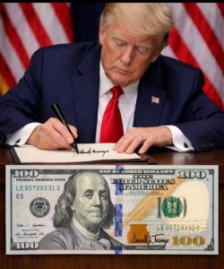 أعلنت وزارة الخزانة الأمريكية، أن العملة الورقية الأمريكية ستحمل توقيع الرئيس دونالد ترامب ابتداءً من هذا الصيف، في سابقة هي الأولى من نوعها لرئيس أمريكي في منصبه أن يوقع على عملة أمريكية. كما سيحذف، ولأول مرة منذ 165 عامًا، توقيع أمين الخزانة الأمريكي، الذي يتبع لوزير الخزانة ويشرف على مكتب النقش والطباعة، ودار سك العملة الأمريكية، وغيرها من وظائف وزارة الخزانة.
