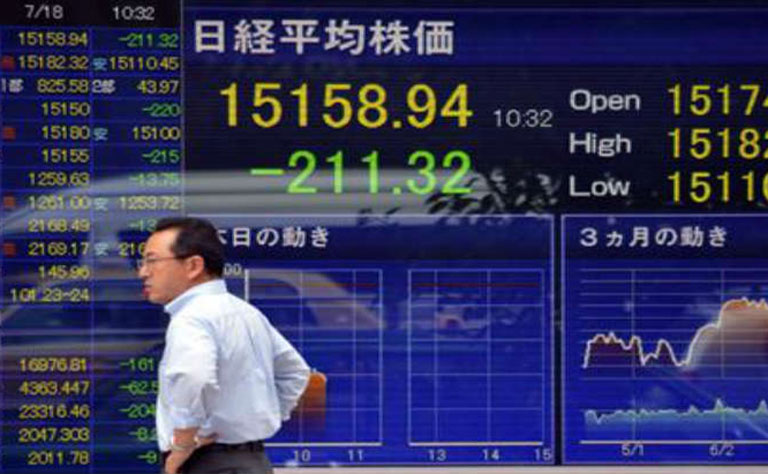 ومن بين أكثر من 1600 سهم تتداول في السوق الرئيسية لبورصة طوكيو، ارتفع 64 بالمئة وانخفض 32 بالمئة، واستقر اثنان بالمئة.