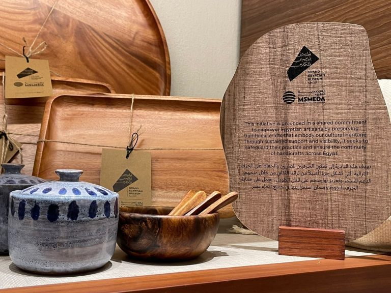 وصرح رحمي بأنه تزامنا مع فعاليات الاحتفال بالأفتتاح العالمي للمتحف المصري الكبير .. قام الجهاز بالتعاون مع بيت الهدايا – المتجر الرسمي للمتحف المصري الكبير .. بعرض مجموعة كبيرة و متميزة من المنتجات التراثية و الفنية الخاصة بالمبدعين و الفنانين من عملاء الجهاز اصحاب المشروعات المتوسطة و الصغيرة و ذلك ضمن فاعليات تنفيذ استراتيجية تطوير الحرف التراثية التي اطلقها الدكتور مصطفي مدبولي رئيس الوزراء و رئيس مجلس ادارة جهاز تنمية المشروعات بهدف تطوير المنتجات التراثية و التسويق لها دوليا من خلال عرضها بالمتجر الرسمي للمتحف المصري الكبير و العديد من التجمعات السياحية بمختلف محافظات الجمهورية